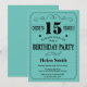 15th Birthday Invitation Black and Teal Typography. Black and Teal Aqua Turquoise Background. Kids Birthday. Male Men or Women Birthday. Kids Boy or Girl Lady Teen Teenage Bday Invite. 13th 15th 16th 18th 20th 21st 30th 40th 50th 60th 70th 80th 90th 100th. Any Age. For further customisation, please click the "Customise it" button and use our design tool to modify this template.