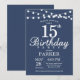 15th Birthday Invitation with String Lights. Blue Background. Kids Birthday. Boy or Girl Lady Elegant bday Invite. 13th 15th 16th 18th 20th 21st 30th 40th 50th 60th 70th 80th 90th 100th, Any age. For further customisation, please click the "Customise it" button and use our design tool to modify this template.