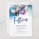 Modern 15th Birthday Quinceañera invitation with navy blue, aqua and pink abstract watercolors and a matching back page.