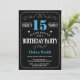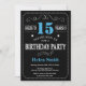 15th Birthday Invitation Blue and Black Typography. Chalkboard. Black and White Background. Adult Birthday. Male Men or Women Birthday. Kids Boy or Girl Lady Teen Teenage Bday Invite. 13th 15th 16th 18th 20th 21st 30th 40th 50th 60th 70th 80th 90th 100th. Any Age. For further customisation, please click the "Customise it" button and use our design tool to modify this template.