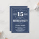 15th Birthday Invitation Blue and White Typography. Blue and White Background. Kids Birthday. Male Men or Women Birthday. Kids Boy or Girl Lady Teen Teenage Bday Invite. 13th 15th 16th 18th 20th 21st 30th 40th 50th 60th 70th 80th 90th 100th. Any Age. For further customisation, please click the "Customise it" button and use our design tool to modify this template.