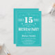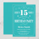 15th Birthday Invitation Teal and White Typography. Teal and White Background. Kids Birthday. Male Men or Women Birthday. Kids Boy or Girl Lady Teen Teenage Bday Invite. 13th 15th 16th 18th 20th 21st 30th 40th 50th 60th 70th 80th 90th 100th. Any Age. For further customisation, please click the "Customise it" button and use our design tool to modify this template.