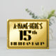 The front of this 1920s/1930s era style inspired fifteenth birthday party/celebration foil invitation card design features a customisable name, an art deco look inspired number “15th”, the message “BIRTHDAY PARTY”, and a multi-line border. The back features personalised details about the event, such as the date, time, place/venue, and any other information that may be relevant. Luxurious, stylish, customisable invitations like these might be used to invite guests to a birthday party being held in celebration of somebody’s 15th birthday. [~Z0000606]