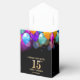 15th Birthday Party Black and Gold Colourful Balloons and Confetti Favour Box. For further customisation, please click the "Customise it" button and use our design tool to modify this template.