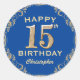 15th Birthday Party Blue and Gold Glitter Frame Classic Round Sticker