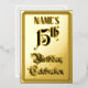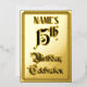 The front of this luxurious fifteenth birthday party/celebration foil invitation design features the message “15th Birthday Celebration” in opulent script-style text. It also features a customisable name. The back features personalised details about the event, such as the date, time, place, and any other information that may be important. Ornate, elaborate, customised invitations like these might be used to invite guests to a birthday party being held to honour somebody’s fifteenth birthday. [~Z0000596]