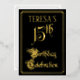 The front of this elegant and luxurious foil fifteenth birthday celebration invitation design features the message “15th Birthday Celebration” in ornate script-style text. It also features a personalised name. The background of the front is coloured black by default (although it can be customised to a different colour). The back features personalised details about the event, such as the date, time, location, and any other relevant information. Opulent, ornate, editable invitations like these might be used to invite guests to a birthday party/celebration being held to celebrate somebody’s 15th birthday. [~Z0000589]