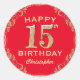 15th Birthday Party Red and Gold Glitter Frame Classic Round Sticker