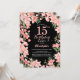 15th Birthday Pink Floral Flowers Black Background Invitation