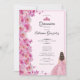 This elegant pink quinceanera invitation has a pink tiara crown, pink roses, glittery dress, and pink butterflies with a personalizable template to create your own message. The invitation template is customizable in the listing editor and is also available as a digital download that's printable after you personalize it.