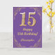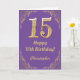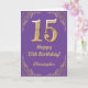15th Birthday Purple and Gold Glitter Frame Card