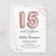 15th birthday party invitation. Elegant design in faux glitter rose gold. Invite card features rose gold number 15 balloons and script font. Perfect for a stylish bday celebration. Message me if you need custom age.
