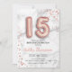 15th Birthday - Rose Gold Balloons Marble Effect Invitation