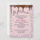 Dripping chocolate icing with colourful candy sprinkles for a 15th birthday party invite.