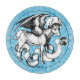 From a set of emblems of the four evangelists, a magnificent winged bull, the symbol of St Luke, printed in the mid 15th century, by artist Martin Schoengauer.