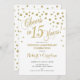 Elegant design with faux glitter gold and white. Cheers to 15 Years!