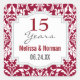 15th Wedding Anniversary Ruby Red Damask A04A. This design with its classic damask pattern makes an elegant choice for a wedding anniversary celebration. Personalise with the couple's names and marriage date.