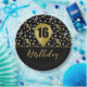 16 Gold Birthday Ballon on Black Gold Confetti Paper Plate