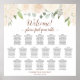 This 16 table wedding seating chart features a rustic boho chic floral design with hand painted watercolor roses, flowers, and blossoms in neutral pastel earth tone shades of champagne blush or very pale peach, along with sprigs of eucalyptus leaves and garden greenery. The elegant script calligraphy title reads: Welcome! Please find your table and there is space for the couple's names and wedding date at the bottom. With table assignments for 160 guests (10 seats per table) this seating chart will make it easy for your guests to find their seats while adding beauty, elegance, and charm to your wedding reception.