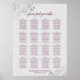 10 seats per tablelacy script calligraphydecorative filigreesilver faux foil frills160 guests names or people16 table wedding seating chartsimple sophisticated and chicelegant floral curls and swirlsclassic gray backgroundmagenta plum or berry purple