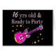 This dazzling 16 year old Rock n Roll Queen will sparkle and sizzle in this stylish 16th pink electric guitar birthday design on Tees and Gifts. Surprise your hip, trendy, and chic 16 year old Birthday Girl with this 16 and fabulous customised birthday gift that she will adore and fall in love with. Celebrate turning 16 looking fantastic in this Rock N Roll Lover 16th birthday design. 16 years old and ready to party.