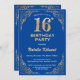 16th Birthday Blue and Gold Glitter Frame Invitation