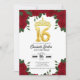 Celebrate a milestone sweet sixteen with this exquisite 16th birthday invitation template, featuring a stunning border of vibrant red roses and a regal gold crown. Perfect for creating a memorable and elegant invitation for a special birthday celebration.