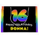 16th Birthday: Colourful Rainbow # 16, Custom Name Large Gift Bag