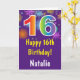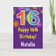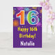 16th Birthday Colourful Rainbow Fireworks Purple Card with personalised name. For further customisation, please click the "Customise it" button and use our design tool to modify this template.
