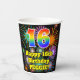16th Birthday: Fun Fireworks Pattern + Rainbow 16 Paper Cups