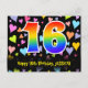 16th Birthday: Fun Hearts Pattern, Rainbow 16 Postcard