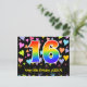 The front of this fun, exciting, and loving birthday themed postcard design features a large number "16" with a rainbow spectrum gradient inspired pattern, along with the message "Happy 16th Birthday,", and a customisable recipient name. The front additionally has a vibrant and colourful background featuring a pattern of loving heart shapes. The back features a customisable birthday greeting message, or could perhaps be cleared and left blank if a message is to be written by hand instead. A customisable birthday postcard like this might be a fun way to send a message celebrating somebody’s sixteenth birthday. Postcards like this might also be used to invite guests to a birthday celebration being held for somebody who is turning 16 years old. [~Z0000448]