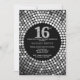 16th Birthday Invitation Black and Silver Glitter