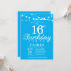 16th Birthday Invitation with String Lights. Blue Background. Kids Birthday. Boy or Girl Lady Elegant bday Invite. 13th 15th 16th 18th 20th 21st 30th 40th 50th 60th 70th 80th 90th 100th, Any age. For further customisation, please click the "Customise it" button and use our design tool to modify this template.