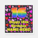 This joyful and happy birthday themed paper napkin design features a large number “16” having a rainbow spectrum gradient inspired pattern. It also features the message “Happy 16th Birthday,”, and a customisable name. The background features a pattern of red, purple, and pink heart shapes. Loving, happy paper napkins like this might be fun to use at a birthday celebration being held to honour somebody’s 16th birthday. [~Z0000550]