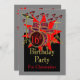Musical drum beat 16th birthday party invitation for a special boy features a colourful drum set sitting on a bright red starburst with age on the base drum. Red musical notes radiate above and a background of black and white geometric shaped tiles adds a flowing touch. Party boy’s name is on the front and may be personalised using the template provided. The back of the invite has the same black and white geometric background with red musical notes, Let’s Party starburst, and red and golden text on a black marquee. All invitation text on the back may be customised to fit your needs using the templates provided. Enjoy a browse through my Musical Drum Beat Birthday Party Collection for fun matching party product ideas. I specialise in custom-made designs and welcome a contact if you would like a unique custom party product using the components of this musical drum beat design.