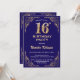 16th Birthday Navy Blue and Gold Glitter Frame Invitation