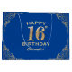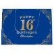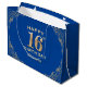16th Birthday Party Blue and Gold Glitter Frame Large Gift Bag