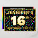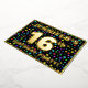 The front of this vibrant and exciting sixteenth birthday party foil invitation card design features an editable name, a large number “16th”, the message “BIRTHDAY PARTY!”, and a border. The background of the front has a fun, multicolored starfield pattern. The back features personalised details about the event, such as the date, time, location, and any other useful information. Editable invitations like these might be a fun way to invite guests/attendees to a birthday gathering/party being held in celebration of somebody’s 16th birthday. [~Z0000600]