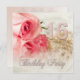 A beautiful delicate image of a rose in soft pink tones. In the background is a string of pearls. The whole effect is softened by a delicate feather. A delightful 16th birthday party invitation. Change the back to your own party details