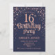 16th Birthday Party - Navy & Rose Gold Invitation