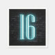 Glowing aqua neon sign on dark brick background for a 16th birthday party.
