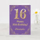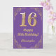 16th Birthday Purple and Gold Glitter Frame Card