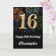 16th Birthday Rainbow Fireworks Black and Gold Card