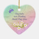 A pretty rainbow of colours, pink flowers and lavender butterflies fills this 16th girls Happy Birthday keepsake heart ornament with joy. A treasure for a special teen. Personalise the back of ornament in template provided. You may also enjoy the matching gifts and other products available in my store. Original design by Anura Design Studio.