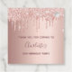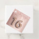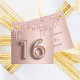 A girly and trendy favour tag for a 16th birthday party. A feminine pink, rose gold faux metallic looking background decorated with faux rose gold glitter drips and number 16 written with a balloon style font on the front.