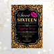Elegant black white design with faux glitter gold and leopard print pattern. Features pink lips kiss, confetti and script font. Perfect for a stylish 16th birthday party. Message me if you need further customization.