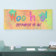 Have fun for a birthday with this WooHoo Birthday Banner. Customise for a year and name (as well as a different event). The text "WooHoo" is on a multicolor orange, coral and yellow background with magenta and teal green flowers. The topography is hand drawn and is multicolors of orange, magenta, blue green and yellow.