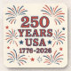 This coaster features a Semiquincentennial Holiday Image to celebrate American independence from the British. These coasters will help you celebrate 250 years of American independence with this festive red and blue fireworks design. The coasters are durable, tough and absorbent. The coaster dimensions are 3.8" by 3.8". The coasters are great for parties, events and home use. There are six coasters in a coaster set. The coasters are square plastic coasters with non-skid cork backings.