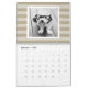 Add your favorite photos to make a modern photography calendar. Each month includes room for a full photo. There is also a space on the front and the back to customize with more pictures.